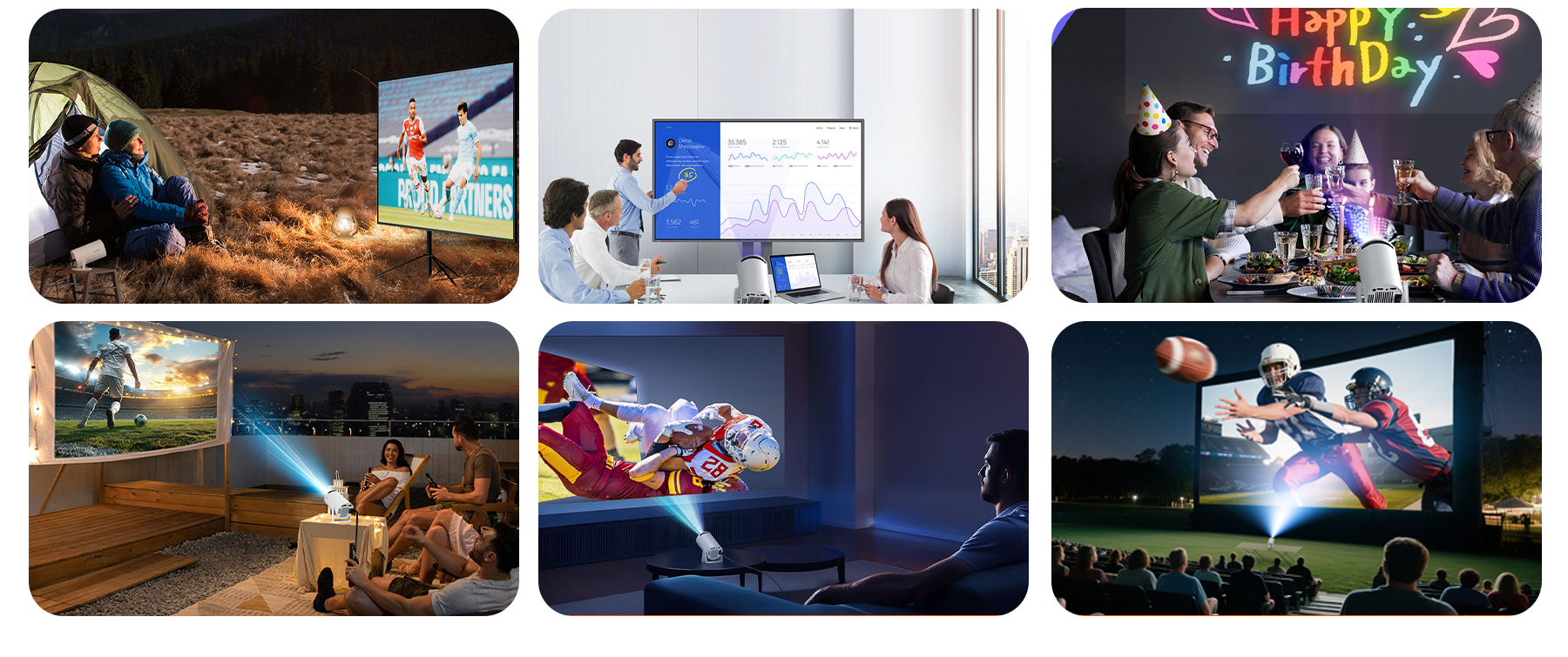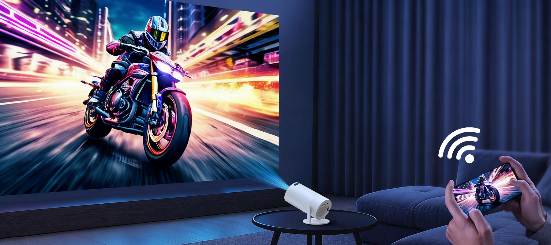 Der kompakte Körper des Evove Mini projiziert mühelos einen massiven 130-Zoll-Bildschirm und lässt Ihre Inhalte größer und immersiver erscheinen. Ob beim Ansehen eines Films, Spielen eines Spiels oder beim Verfolgen des großen Spiels mit Freunden, er liefert ein unvergleichliches visuelles Erlebnis.