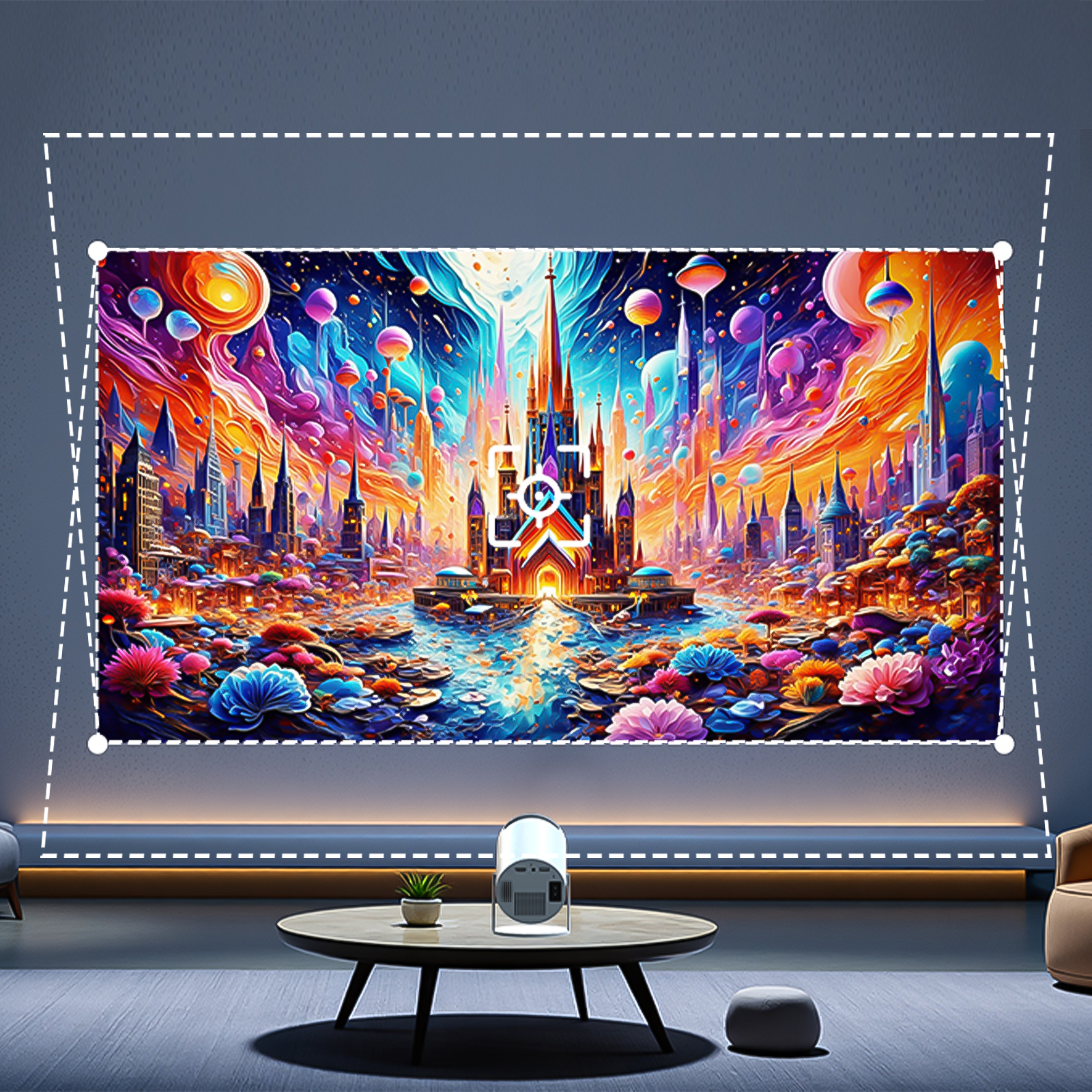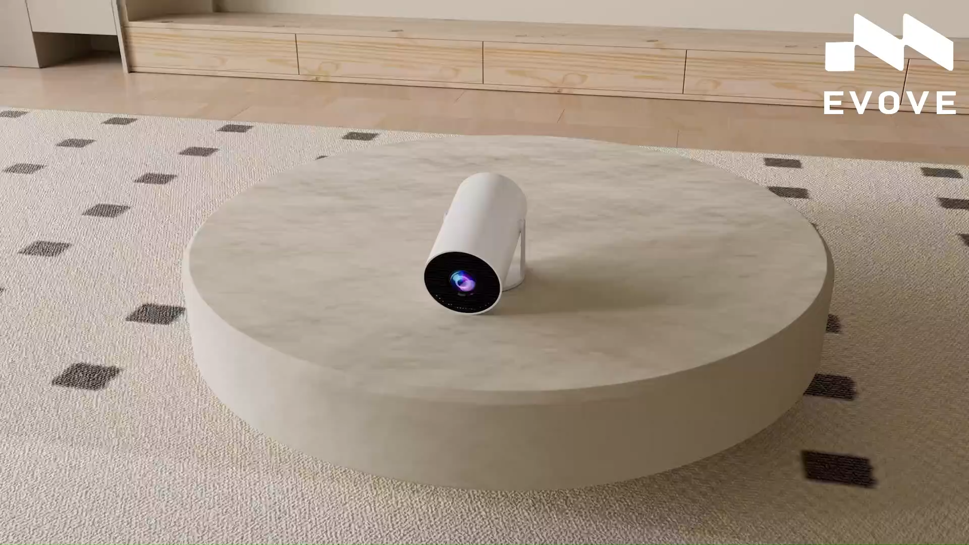 Der Evove Mini verwendet fortschrittliche Auto-Korrektur-Technologie, die eingebaute Sensoren und intelligente Algorithmen nutzt, um sofort Neigungen und Trapezverzerrungen zu erkennen und zu kompensieren. Dies ermöglicht es dem Projektor, sich intelligent an jede Oberfläche anzupassen – von der Wand bis zur Decke – und garantiert Ihnen ein perfektes Bild und das beste Seherlebnis jederzeit und überall.