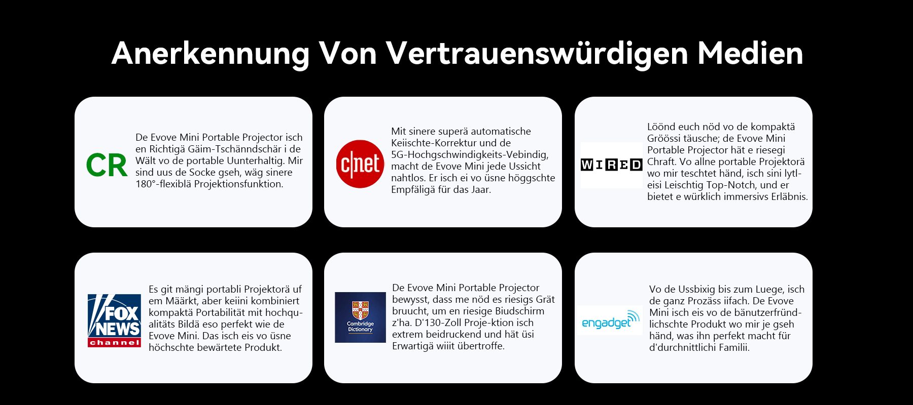 Mit seinem kompakten und tragbaren Design gibt Ihnen der Evove Mini die Freiheit, Ihre Unterhaltung überall hin mitzunehmen. Verbringen Sie eine spontane Filmnacht mit Freunden oder schaffen Sie einen gemütlichen Filmraum für Ihre Familie, während Sie reisen. Die Möglichkeiten für Ihre Unterhaltung sind endlos.
